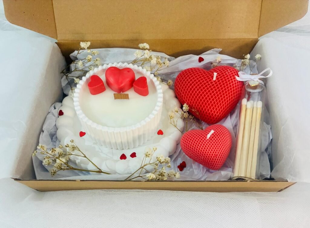 Todo presentado en una elegante caja roja en forma de corazón, perfecta para sorprender en San Valentín o en cualquier ocasión especial.