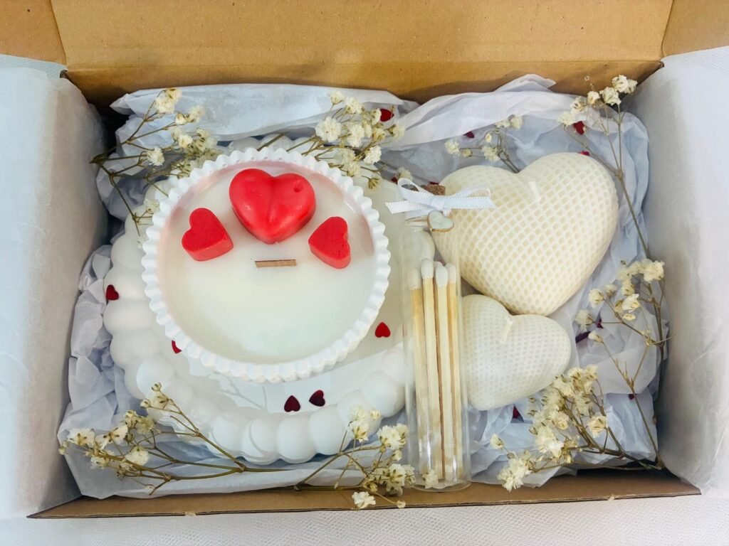 • 🕯️ 2 velas en forma de corazón, símbolo del amor.