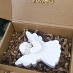 Cada pieza es única y viene presentada en una cajita kraft con relleno decorativo, lista para obsequiar y transmitir buenos deseos.
