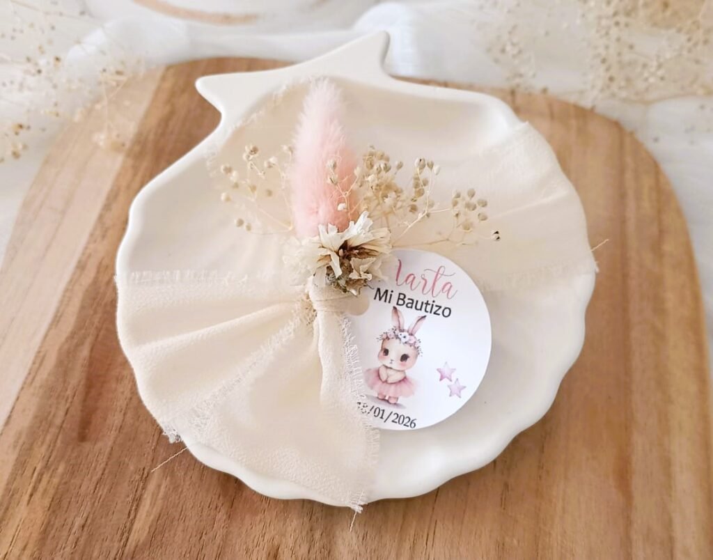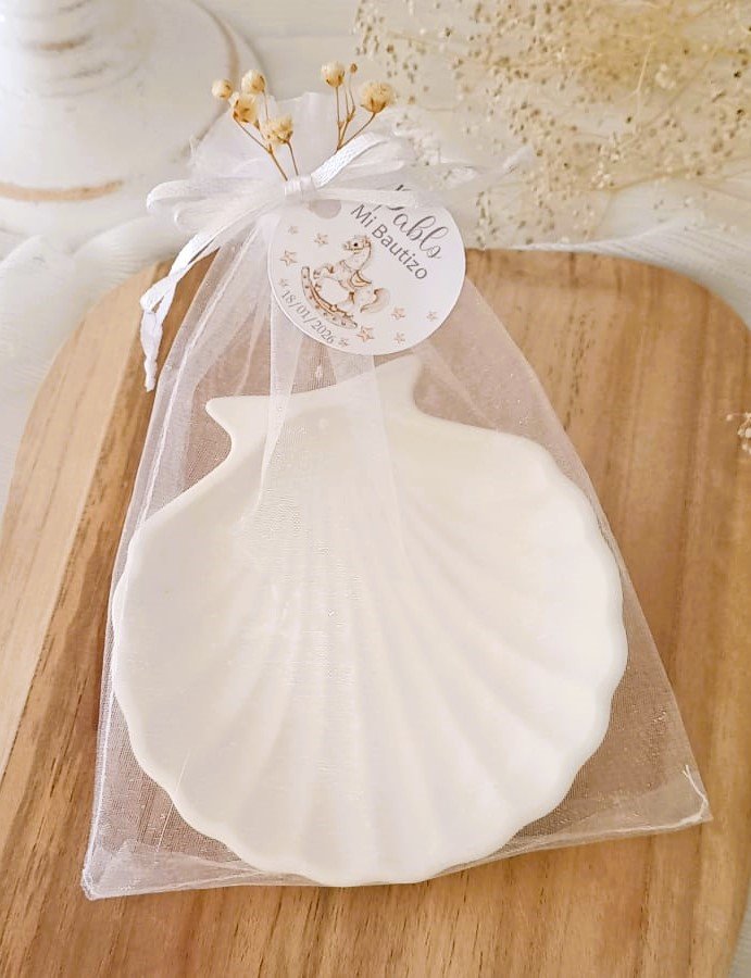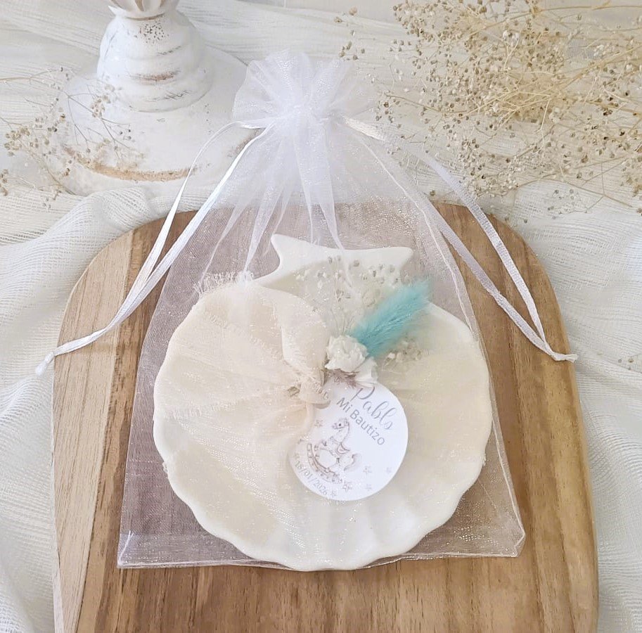 Esta preciosa concha artesanal está cuidadosamente hecha y decorada a mano, lo que la convierte en una pieza única y especial. Su diseño elegante y original la hace perfecta como detalle para invitados en bodas, comuniones, bautizos o cualquier tipo de evento.