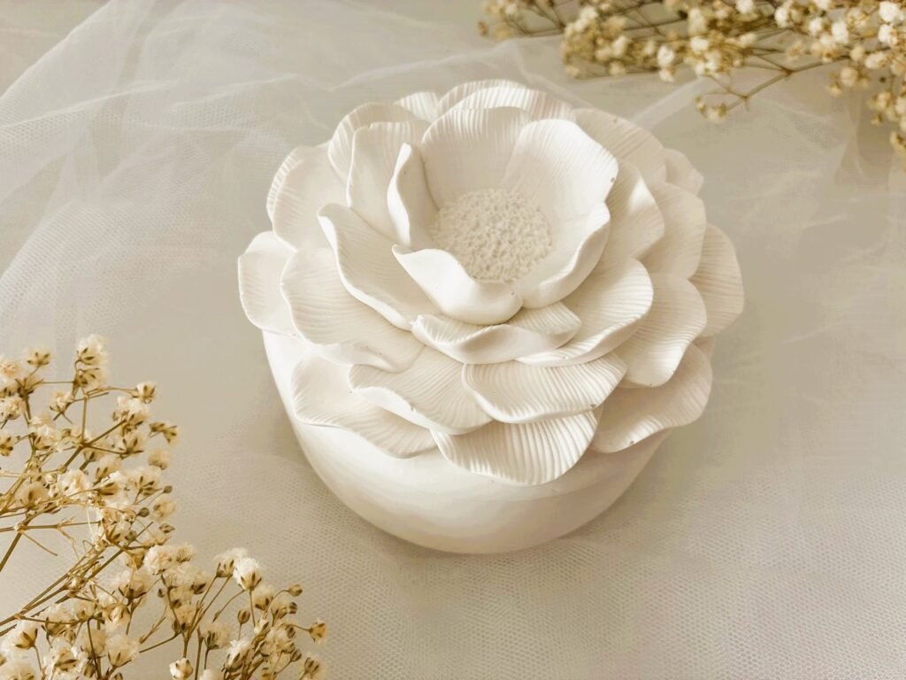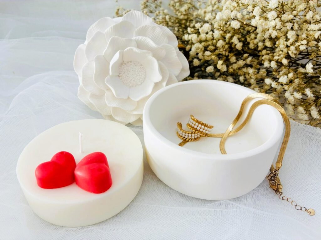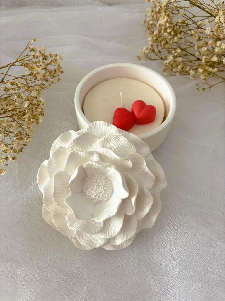 Delicado joyero en forma de flor acompañado de un recambio de cera aromática, creado especialmente para San Valentín. Un detalle romántico y funcional que decora cualquier rincón mientras envuelve el ambiente con su aroma.