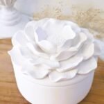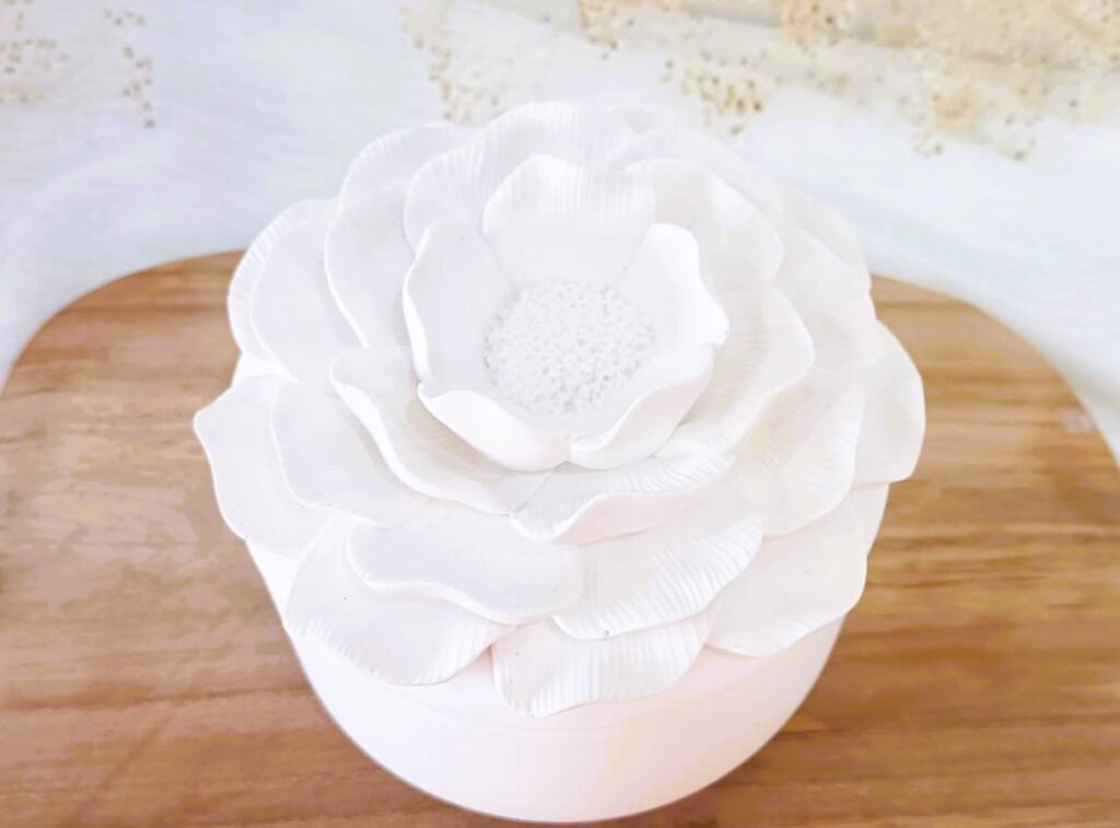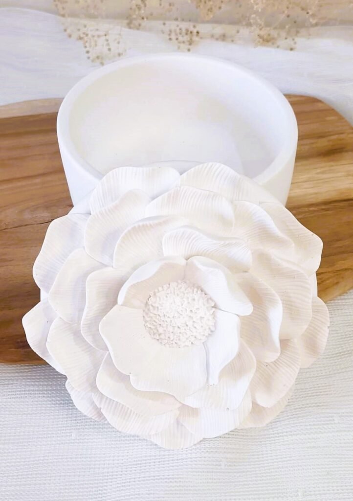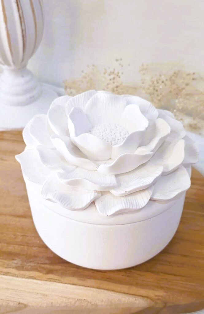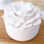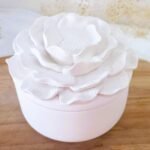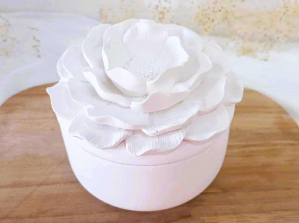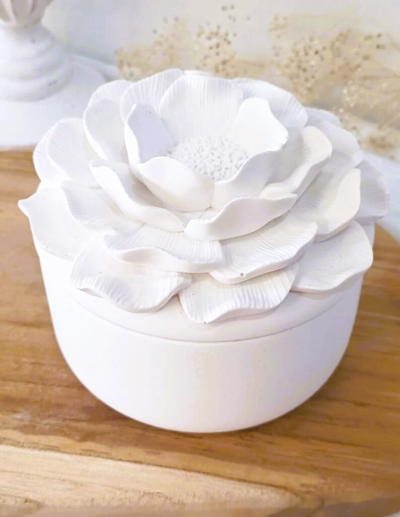 Elegante recipiente de cerámica con tapa floral. Ideal para guardar pequeños tesoros o regalar con estilo.