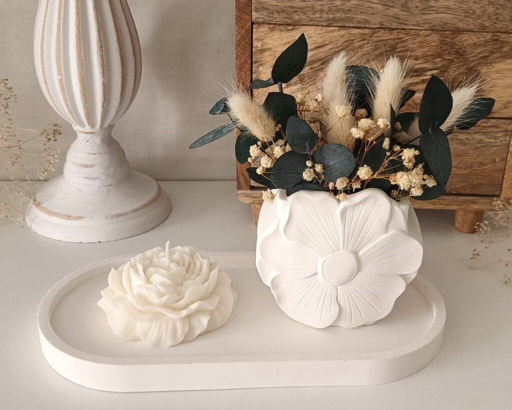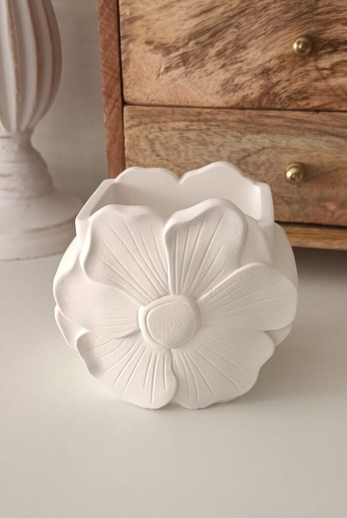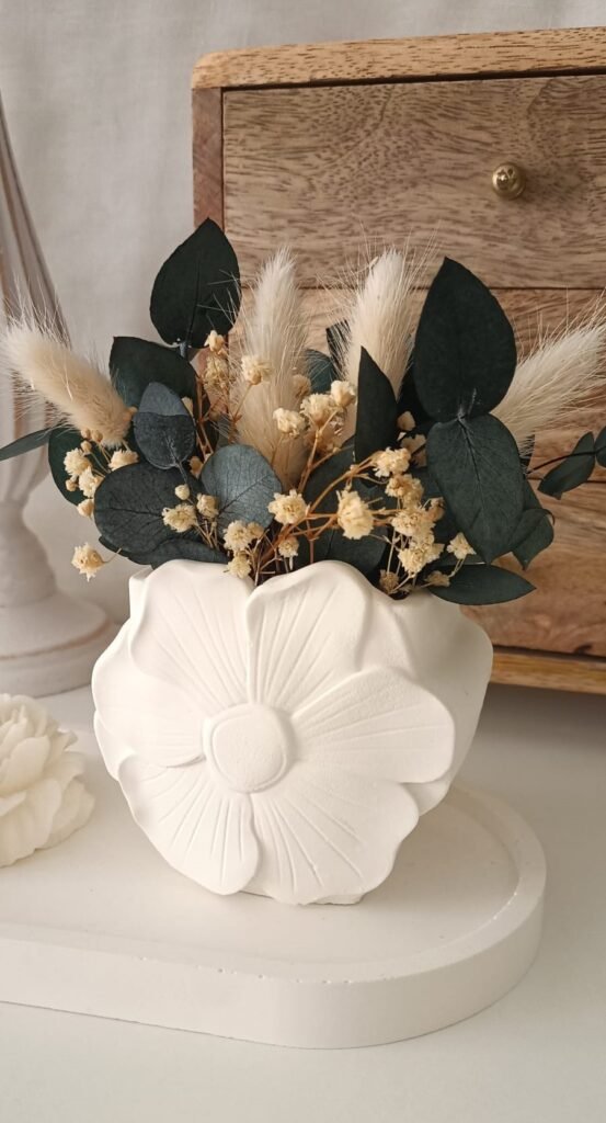 Jarron con flor labrada por ambas caras, ideal para decorar tus espacios favoritos. Cada pieza está hecha a mano con cuidado y detalle, convirtiéndola en un elemento único.