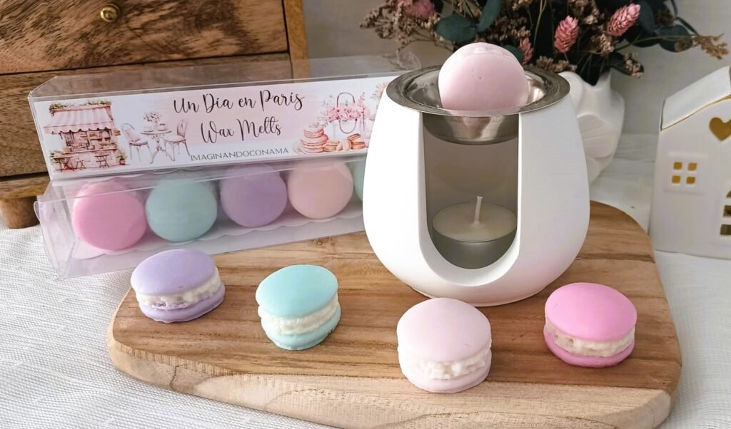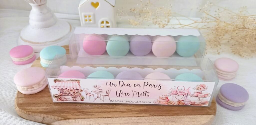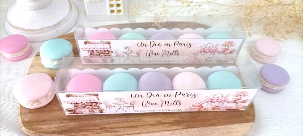 Wax melts con forma de macarons, elaborados con cera de soja natural y fragancia inspirada en la vainilla de la Polinesia. Presentados en elegante caja de acetato, perfectos para aromatizar tu hogar de manera natural y sofisticada. El precio no incluye quemador de cerámica, disponible en nuestra tienda.