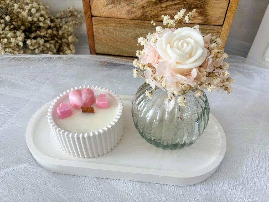 Completa el pack un jarrón con flores preservadas y vela en forma de rosa, un detalle elegante que llenará cualquier rincón de amor y estilo… un regalo que perdura. ❤️