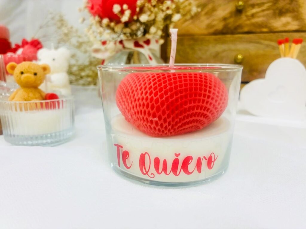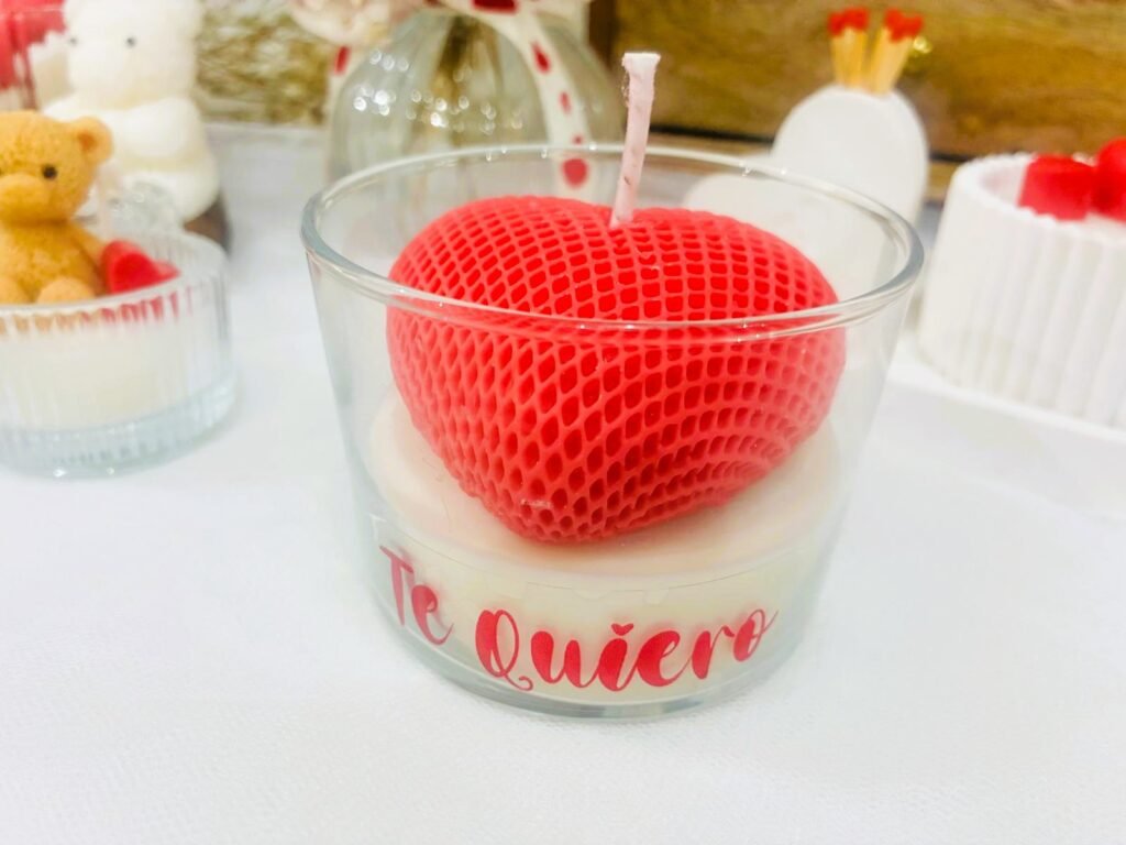 Vela aromática artesanal de la edición especial San Valentín, con aroma a elegir, creada para llenar de calidez y romanticismo cualquier espacio.
