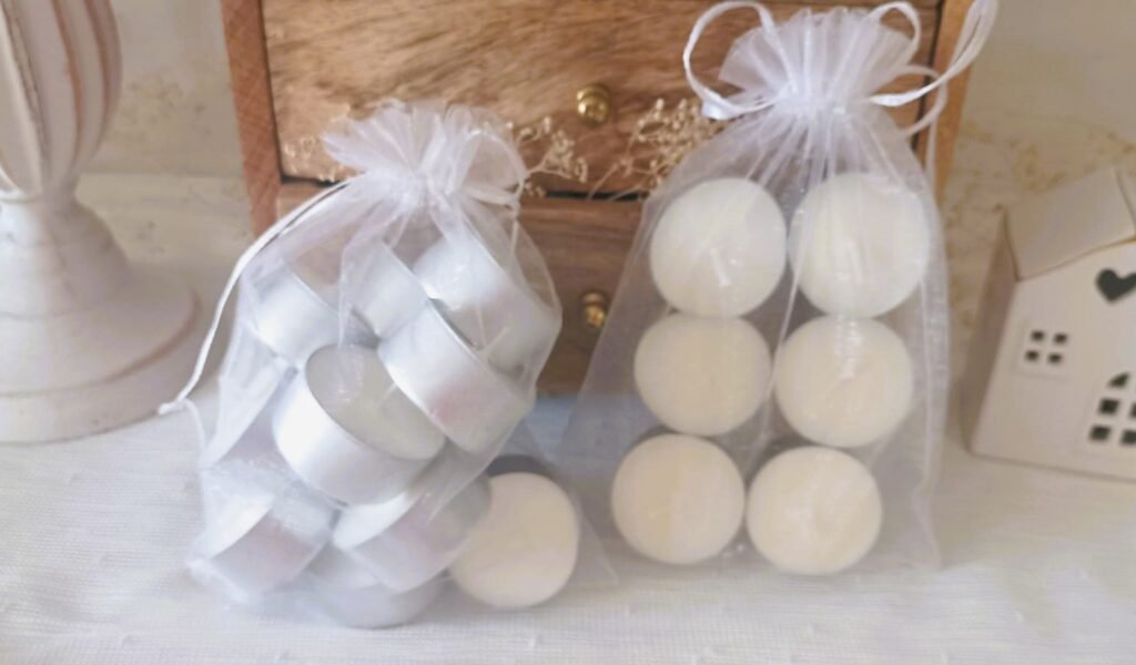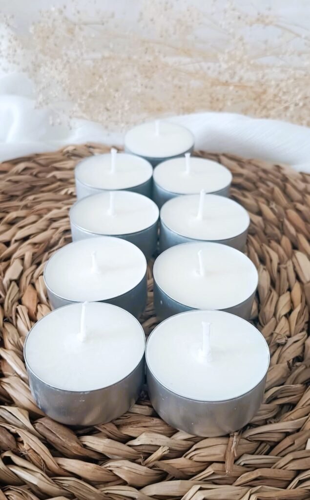 Pequeñas velas elaboradas con cera de soja 100% natural, sin aroma, ideales para crear un ambiente cálido y relajante. Perfectas para usar en quemadores de esencias, portavelas o para decorar cualquier rincón. Su luz suave invita al bienestar y la tranquilidad, acompañando tus momentos de descanso o meditación. ✨